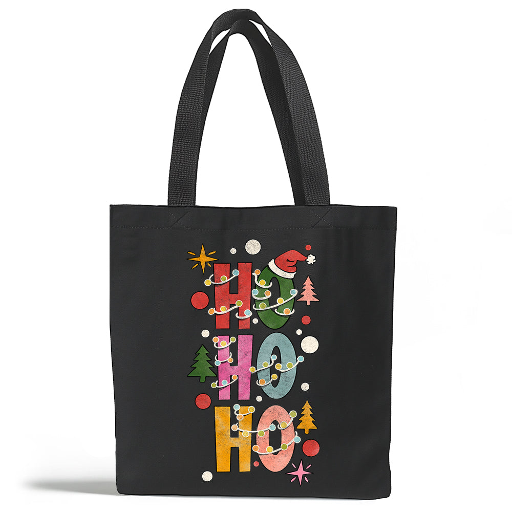 Bring holiday cheer wherever you go with the Ho Ho Ho Festive Holiday Season Tote Bag. Featuring the bold phrase “Ho Ho Ho” decorated with festive lights and holiday trees in a retro-inspired design, this durable canvas tote is perfect for Christmas shopping, carrying gifts, or adding seasonal charm to everyday errands. A practical yet playful Christmas gift for retro design fans and holiday enthusiasts.