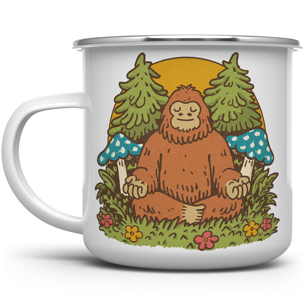 The Meditating Bigfoot Enamel Camp Mug blends humor, nature, and retro charm into one eye-catching design. Featuring a relaxed Sasquatch sitting cross-legged among trees and mushrooms, this mug gives off calm, outdoorsy vibes with a playful twist.