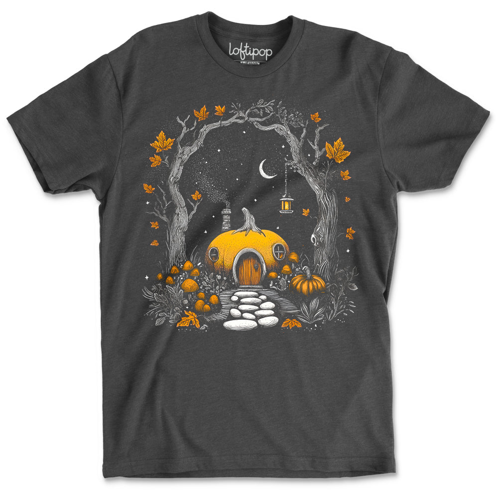 Wrap yourself in fall magic with the Autumn Forest Pumpkin House Sweatshirt. This cozy crewneck features a whimsical autumn design of a charming pumpkin cottage nestled in a woodland setting, surrounded by warm fall foliage and nature-inspired details. It's perfect for forest dreamers, cozy readers, and cottagecore enthusiasts who want to bring a little rustic magic into their wardrobe.